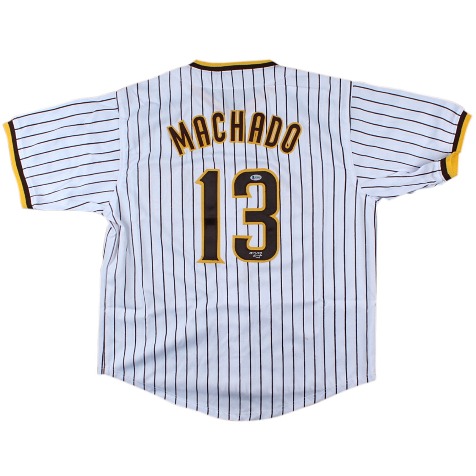 Show off your support for San Diego with this authentic Manny Machado autographed custom jersey! Featuring the iconic pinstripe design and his signature #13, this jersey is certified by Beckett for added peace of mind. A must-have for any passionate fan.