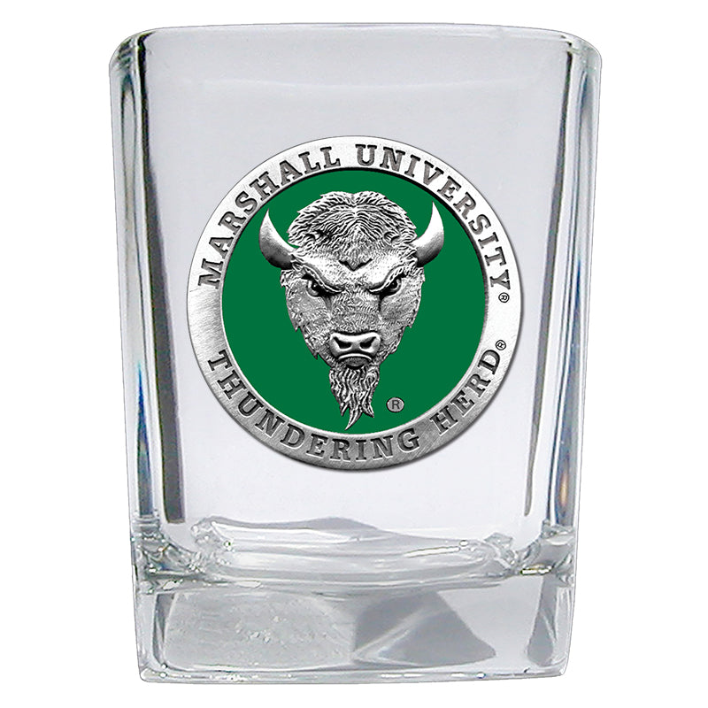 This 1.5 ounce square shot glass is highlighted with a fine pewter casting. Made in USA.