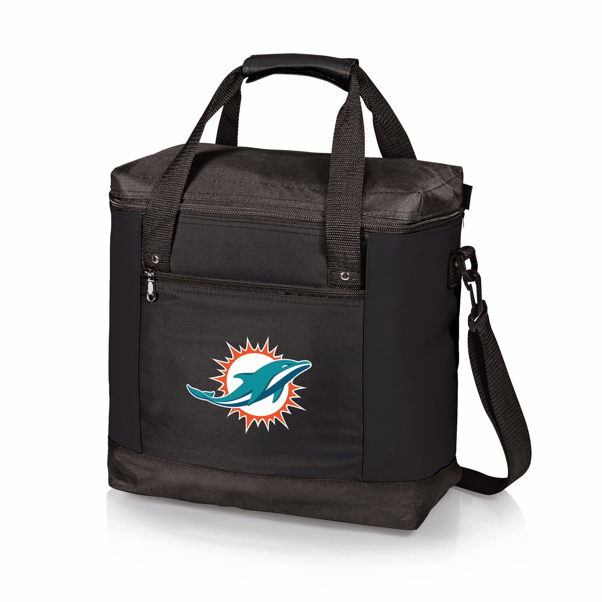 The Miami Dolphins Montero Cooler Tote Bag is the ideal combination of grocery bag, picnic cooler, and beach tote bag in one great soft cooler package. With its fully-insulated & durable polyester canvas exterior, insulated water-resistant liner, and 20-can storage capacity, the Montero can take from camping to outdoor concerts to picnics to the beach to the farmers market with ease. Stay comfy no matter how big the picnic with padded carry handles and an adjustable, detachable shoulder strap. This insulated cooler bag has serious versatility - and serious style.