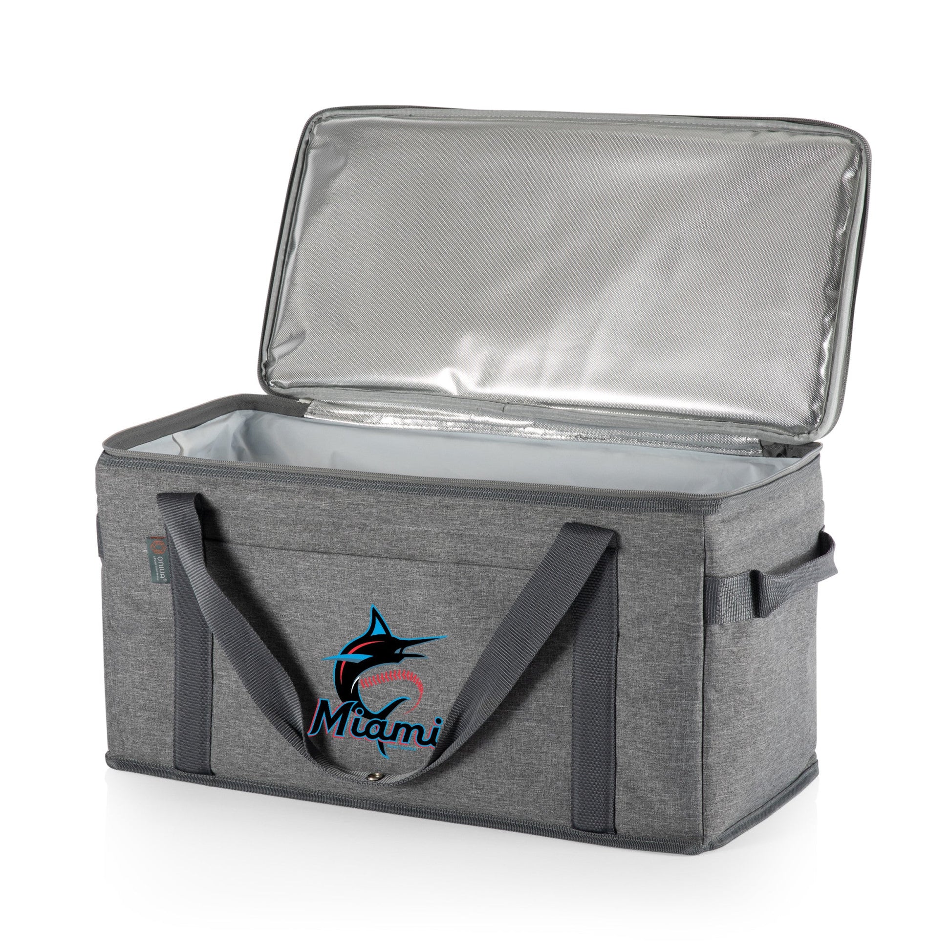 Headed to a big tailgate? Camping with a group? Snack parent for a thirsty crew? Enter the Miami Marlins 64 Can Collapsible Cooler, an insulated soft beverage tote with seriously big capacity! This soft-sided, insulated picnic tote features a water-resistant interior and easily compacts for storage or post-party transport. When you’re through all 64 cans, just secure it to a large pack with the included securable bungee cord or fold it up into another carrier. Go ahead and pack up more than 5 12-packs or pop in some brews and soda with your full picnic - this insulated cooler tote is versatile, durable, and ready for some action! Keep the bubbly bevs flowing on-the-go while you’re having fun with family and friends with the Miami Marlins 64 Can Collapsible Cooler