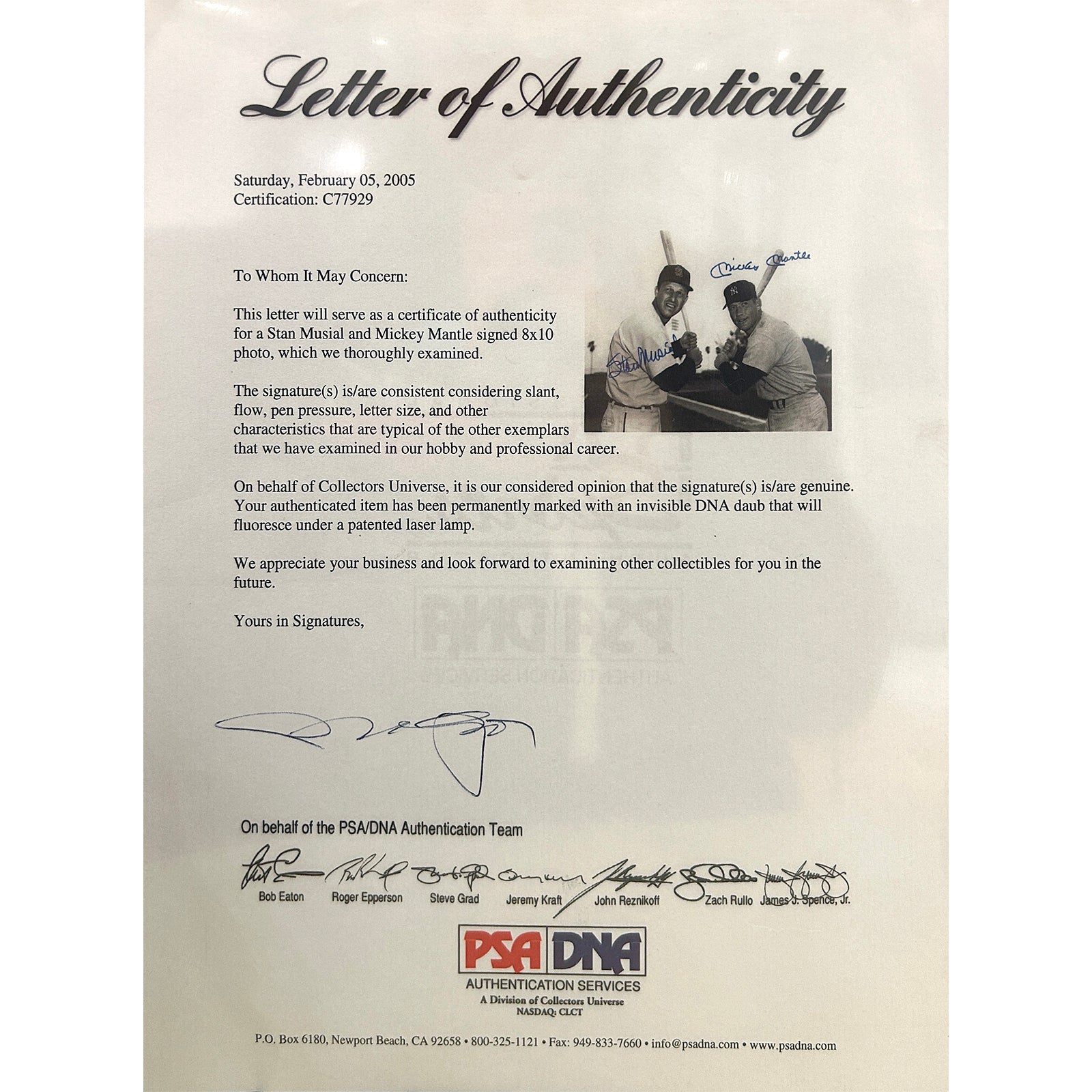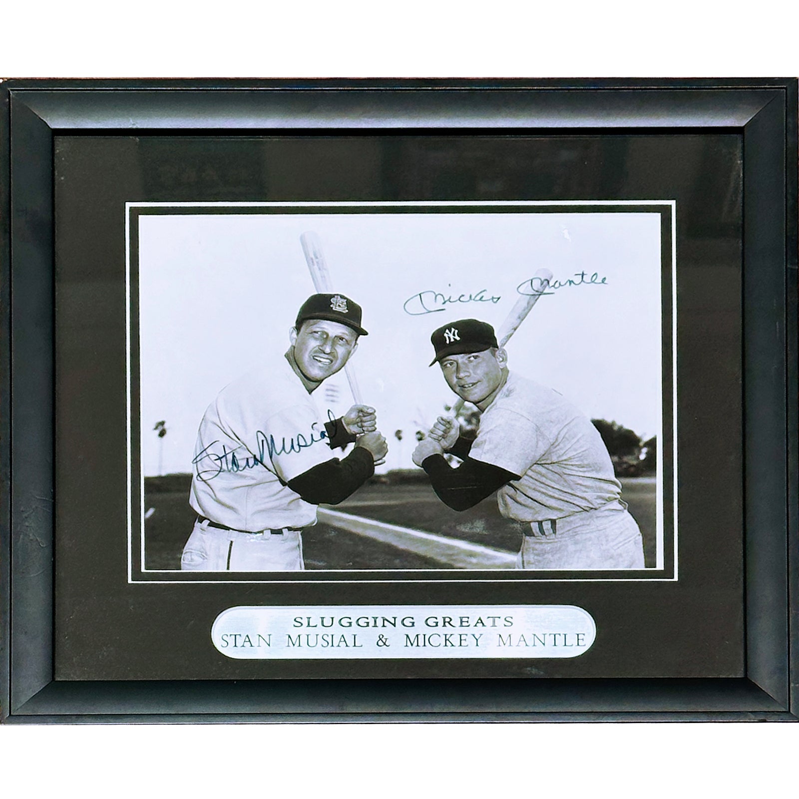 Relive the glory days of baseball with this limited edition deluxe framed photograph featuring autographs from two legendary players, Mickey Mantle and Stan Musial. Proudly display this JSA authenticated piece in your home or office, knowing that you are a part of baseball history. The perfect addition to any sports fan's collection, this item is sure to inspire strong emotions and bring back cherished memories. Don't miss your chance to own a one-of-a-kind piece of iconic sports memorabilia!