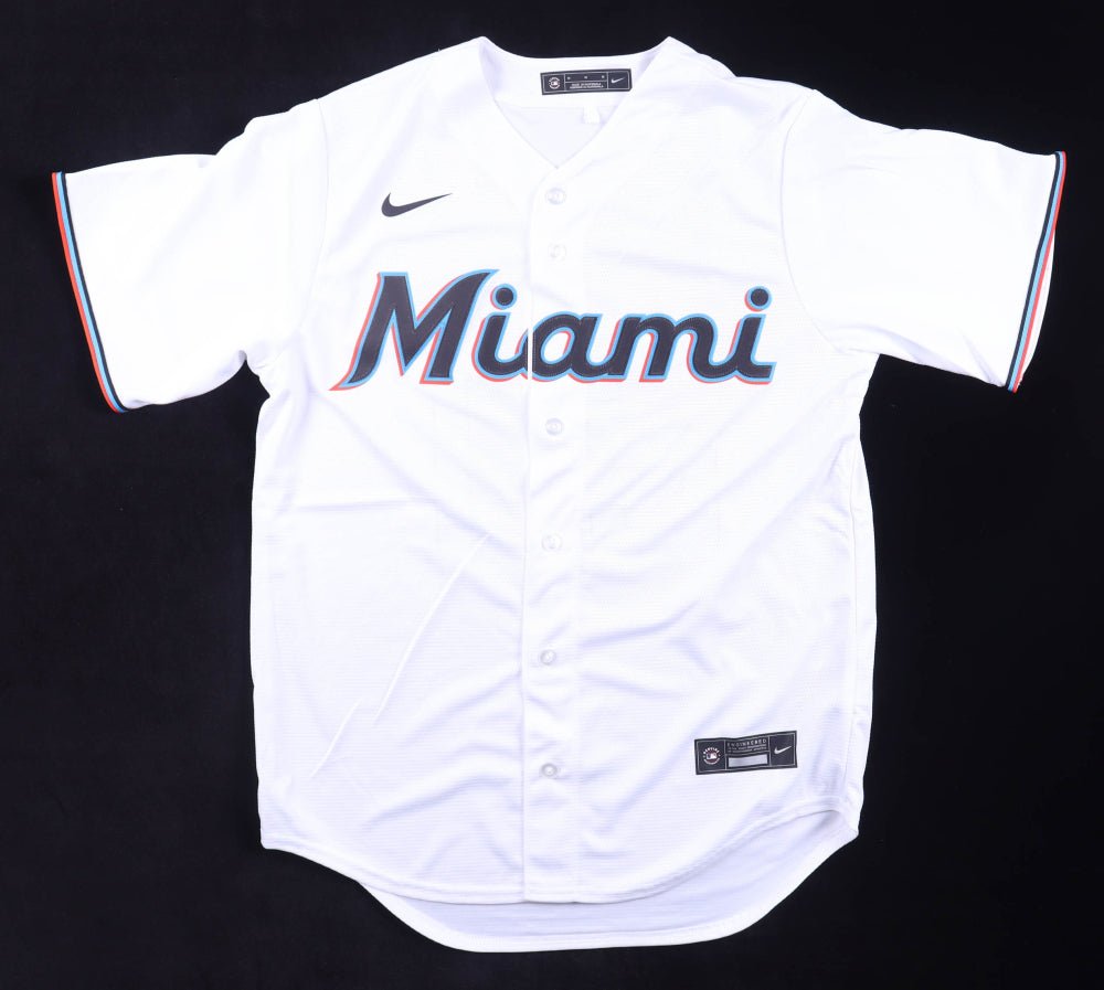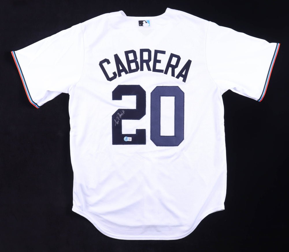 Nike jersey with everything sewn & pressed on, size M. Hand-signed by Miguel Cabrera.