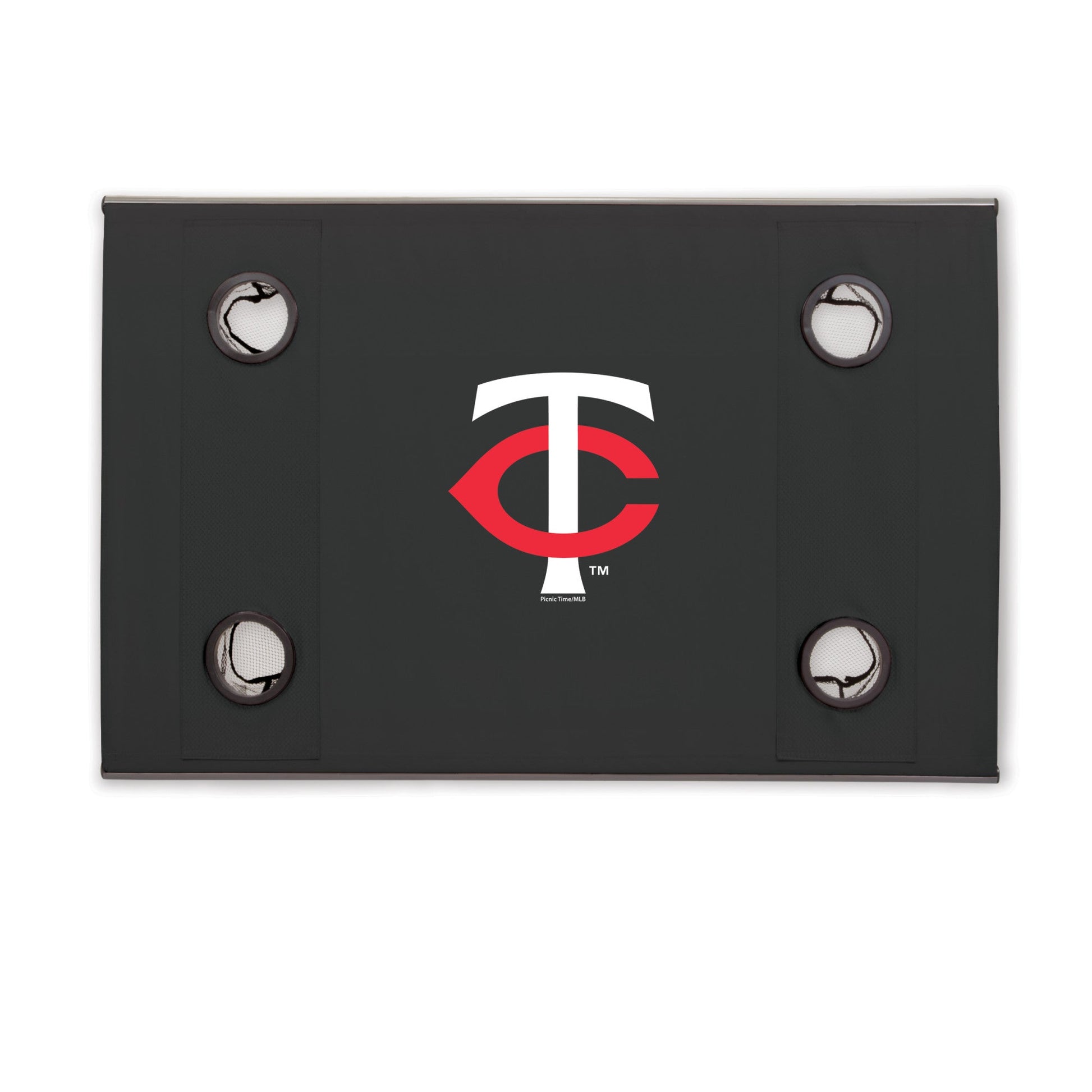 Get everything out on the table with the Minnesota Twins Travel Table Portable Folding Table, the ultimate compact folding table for camping, tailgating, beach days, picnics at the park and bbqs. High quality components include a sturdy polyester canvas skin that stretches over a durable, powder-coated steel frame. The frame folds inward to pack easily into a drawstring bag with a shoulder strap. Four sunken drink holders in the table top, two pouch drink holders on the sides, and a hanging, zippered pouch for personal items, plus a beach umbrella hole for build-in shade make this our downright favorite camping table. With this portable card table at the ready, you’ll always be prepared to make the world your picnic buffet.