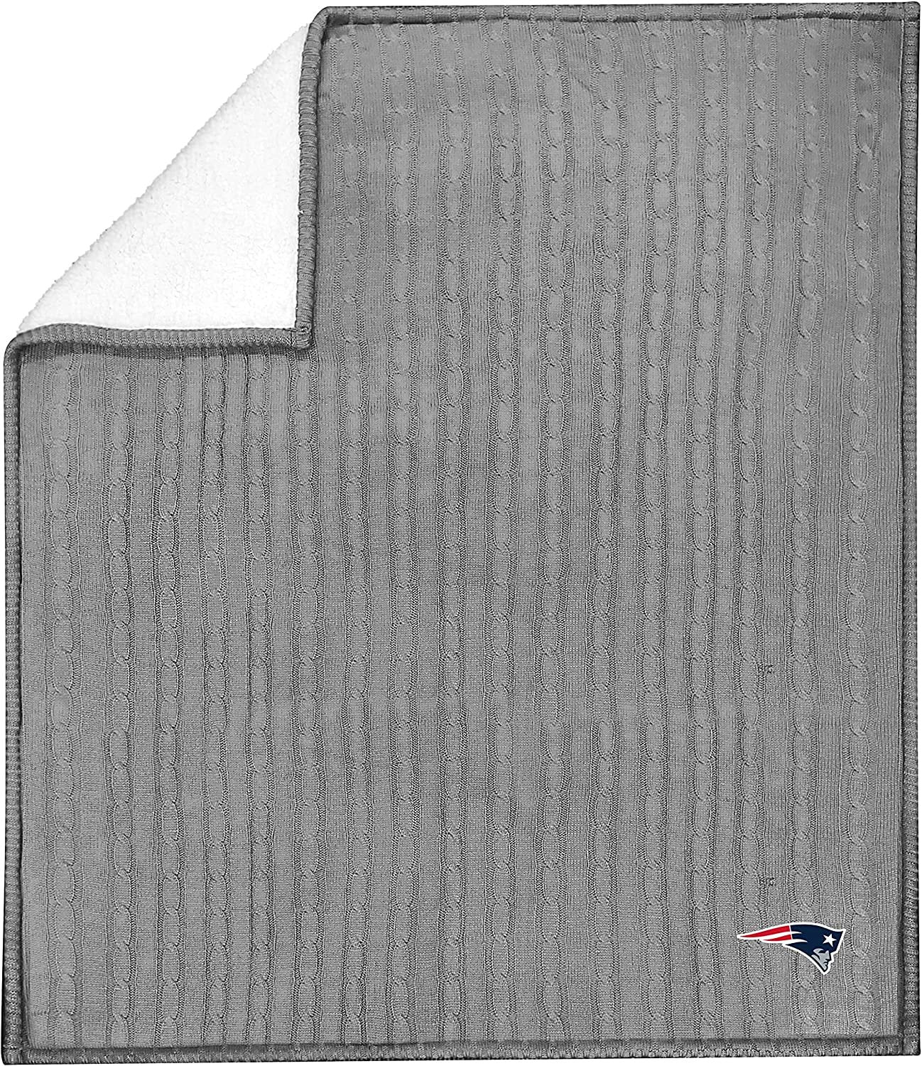 New England Patriots Cable Sweater Knit Sherpa Throw Blanket 50x60 Inch Adult