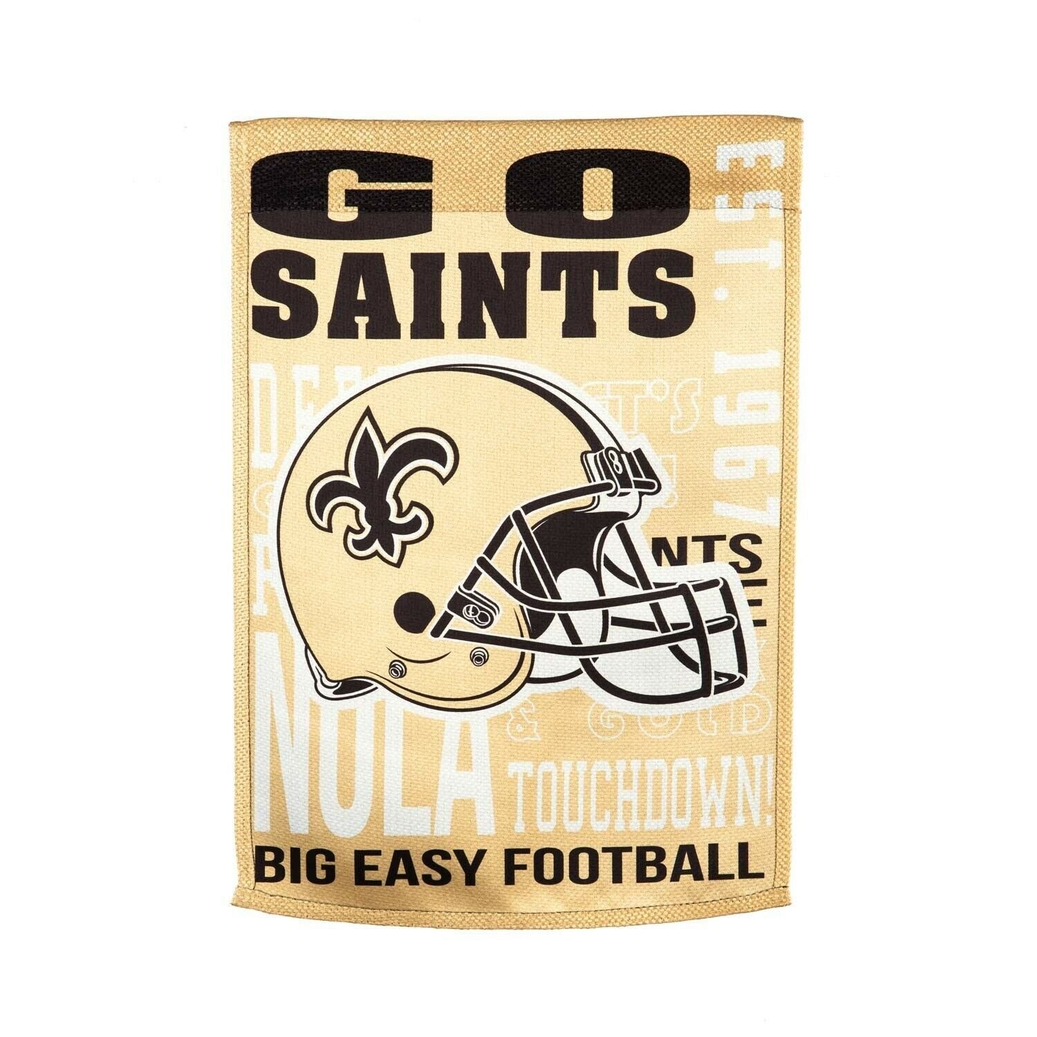 • SUPPORT YOUR TEAM IN STYLE: Show your pride loud and proud with this gorgeous double sided garden flag. New Orleans Saints fans will enjoy a black, white, and gold flag with the Saints logo embossed in the center with different designs on both sides of the flag. Various team phrases like Go Saints, NOLA, Big Easy Football, and Est. 1967 accent the flag and display your team spirit for everyone to see.