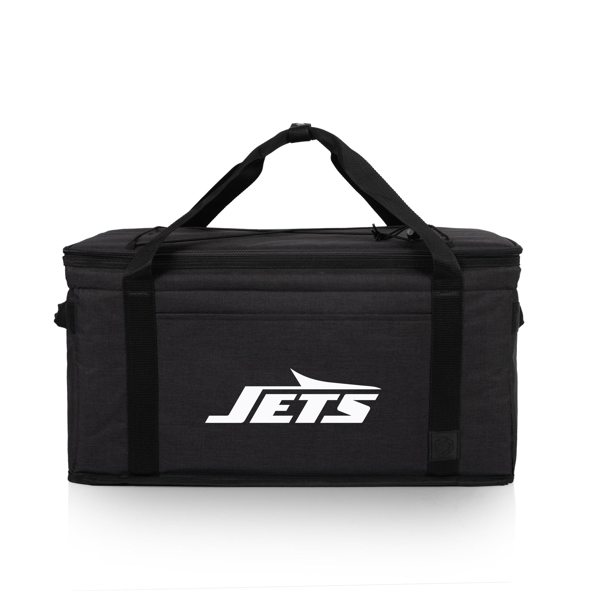 Headed to a big tailgate? Camping with a group? Snack parent for a thirsty crew? Enter the New York Jets 64 Can Collapsible Cooler, an insulated soft beverage tote with seriously big capacity! This soft-sided, insulated picnic tote features a water-resistant interior and easily compacts for storage or post-party transport. When you’re through all 64 cans, just secure it to a large pack with the included securable bungee cord or fold it up into another carrier. Go ahead and pack up more than 5 12-packs or pop in some brews and soda with your full picnic - this insulated cooler tote is versatile, durable, and ready for some action! Keep the bubbly bevs flowing on-the-go while you’re having fun with family and friends with the New York Jets 64 Can Collapsible Cooler