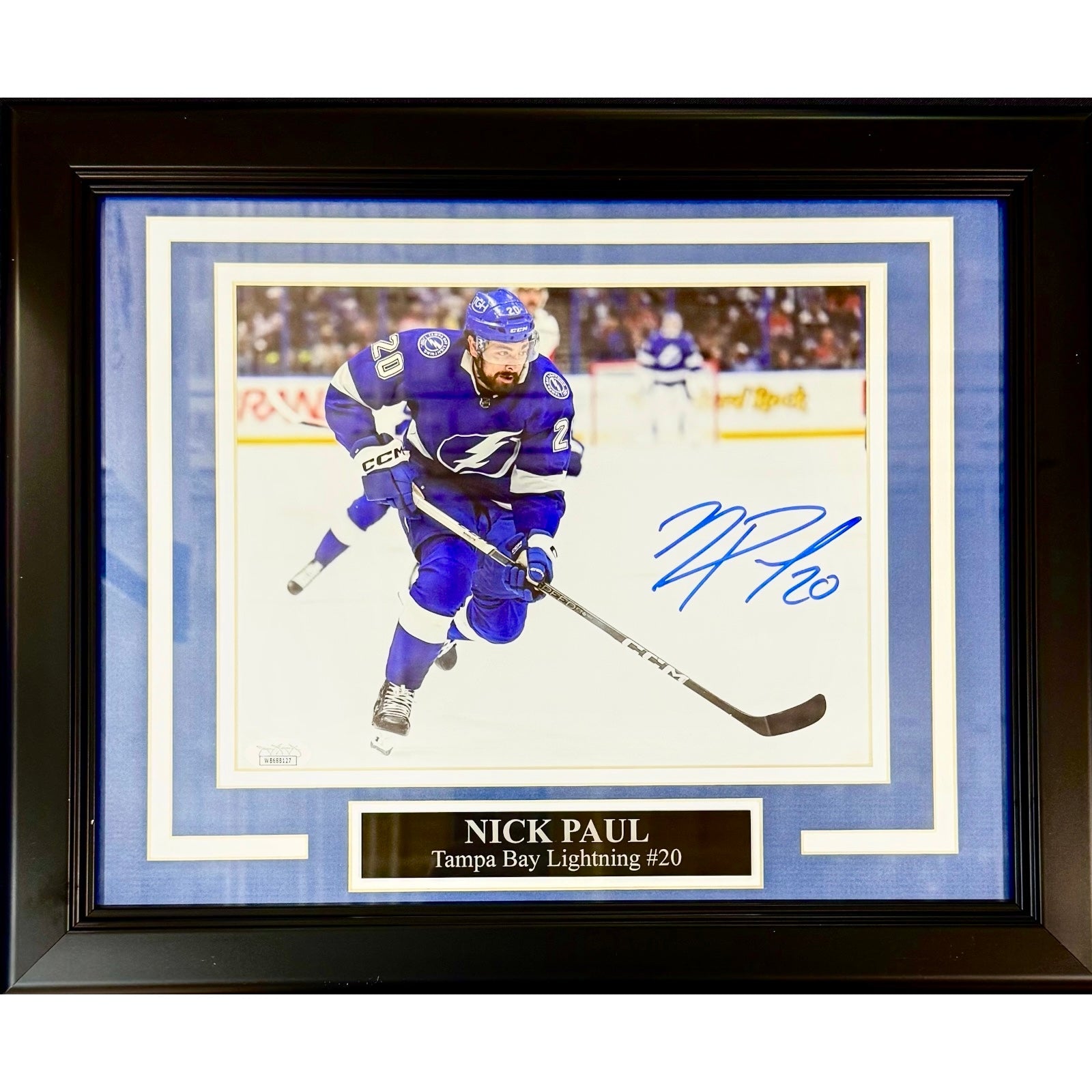 Capture the excitement of the game with this Nick Paul Autographed Tampa Bay Lightning Deluxe Framed 8x10 Photo! Each photo is signed by Nick Paul himself and comes with authenticity from JSA. A must-have for any Lightning fan, this photo is the perfect addition to your sports memorabilia collection.