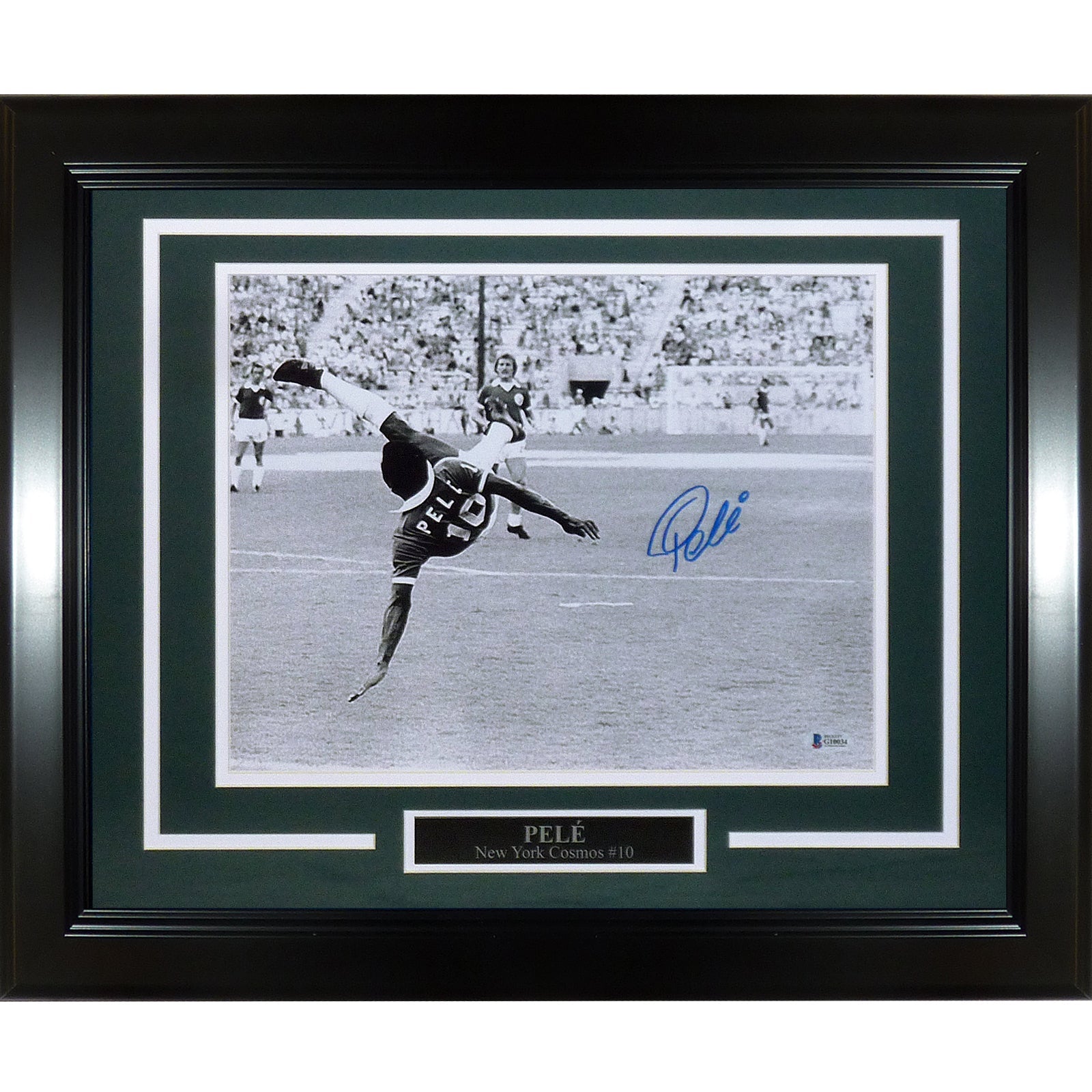 Own a piece of soccer history with this Pele autographed New York Cosmos deluxe framed photo! This iconic image captures Pele's famous bicycle kick and comes with a certificate of authenticity from Beckett. Perfect for any soccer fan and guaranteed to inspire excitement and passion!