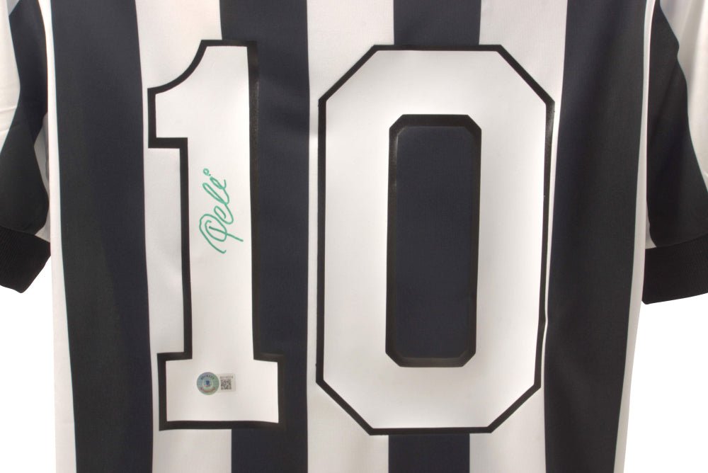 Jersey with everything pressed on, size L. Hand-signed by Pele (D. 2022, HOF).