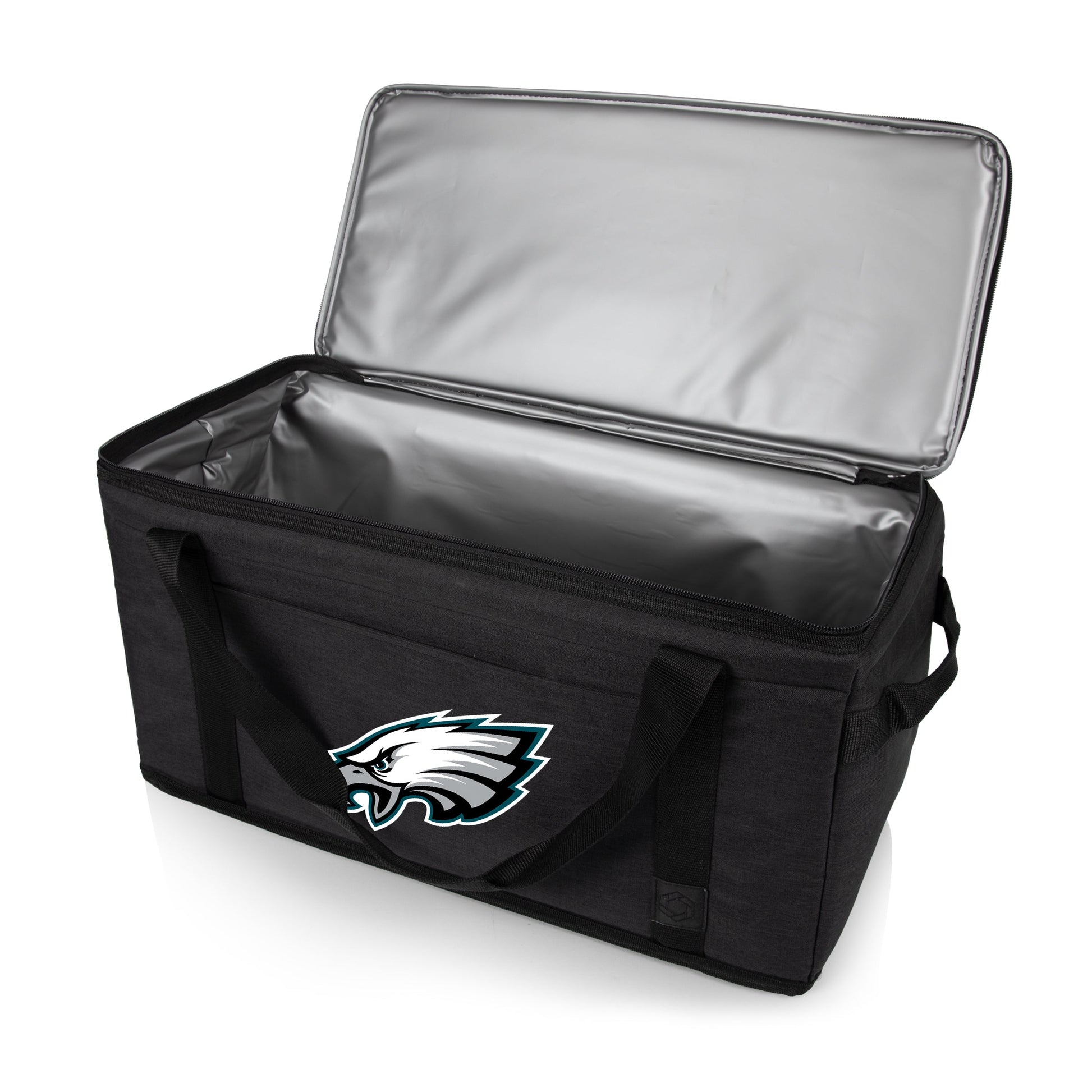 Headed to a big tailgate? Camping with a group? Snack parent for a thirsty crew? Enter the Philadelphia Eagles 64 Can Collapsible Cooler, an insulated soft beverage tote with seriously big capacity! This soft-sided, insulated picnic tote features a water-resistant interior and easily compacts for storage or post-party transport. When you’re through all 64 cans, just secure it to a large pack with the included securable bungee cord or fold it up into another carrier. Go ahead and pack up more than 5 12-packs or pop in some brews and soda with your full picnic - this insulated cooler tote is versatile, durable, and ready for some action! Keep the bubbly bevs flowing on-the-go while you’re having fun with family and friends with the Philadelphia Eagles 64 Can Collapsible Cooler