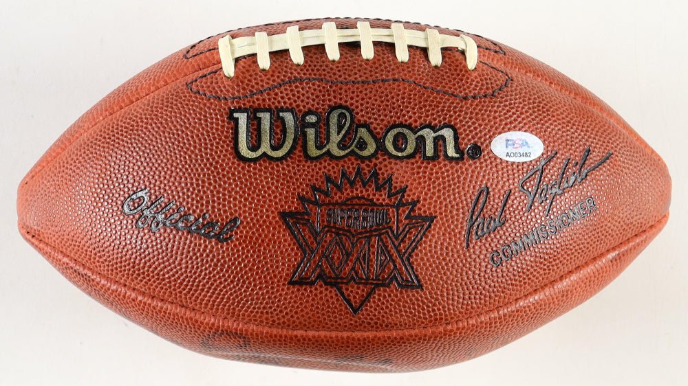 Expertly crafted from an official Wilson football, it proudly features the iconic Super Bowl XXIX logo, making it a striking display of NFL excellence. The football is hand-signed by eight legendary figures, including Lynn Swann, Dan Reeves, Joe Greene, Daryl Johnston, Kevin Greene, Rick Mirer, Nate Newton, and Sam Wyche—each signature verified with an authentic PSA/DNA hologram for guaranteed provenance.