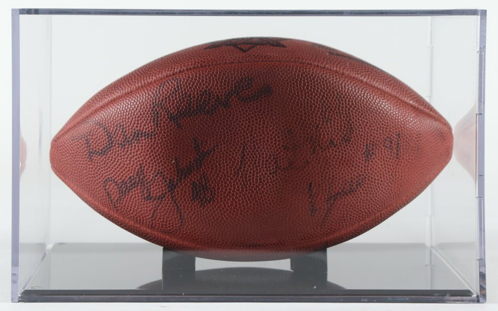 Celebrate the rich history of professional football with the "Pro Football Greats" Super Bowl XXIX Logo Football With Acrylic Display Case Signed By (8) With Lynn Swann, Dan Reeves, Joe Greene, Daryl Johnston (PSA). This exceptional collectible is a must-have for dedicated fans and serious sports memorabilia enthusiasts seeking to own a piece of Super Bowl history.