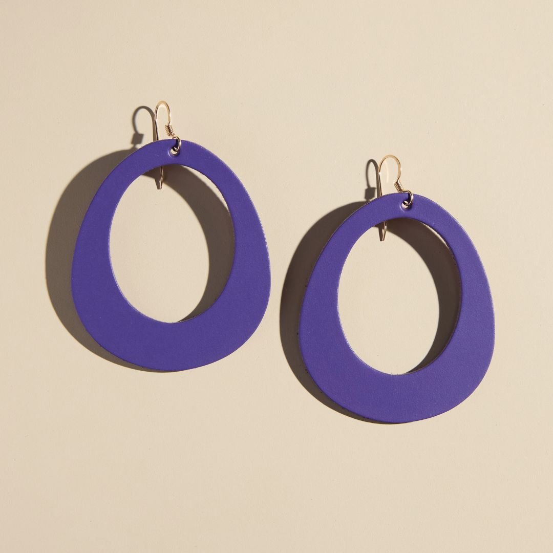 Willows are lightweight statement earrings inspired by organic shapes. These leather earrings are available in two sizes and feature smooth, deep purple leather on 14k gold filled ear wires.