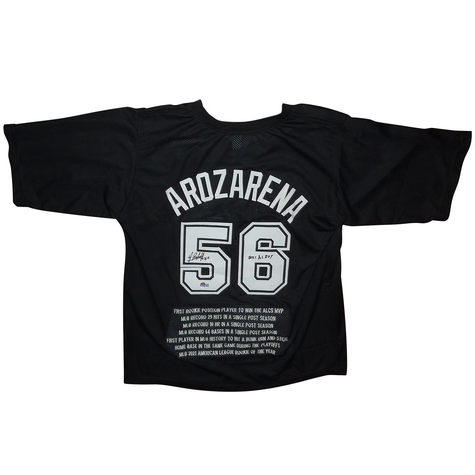 This Randy Arozarena autographed Tampa Bay custom jersey is a must-have for any collector or fan. The custom black design, embroidered stats, and JSA certification add value and authenticity. Show off your passion and support for this rising star with this unique piece.
