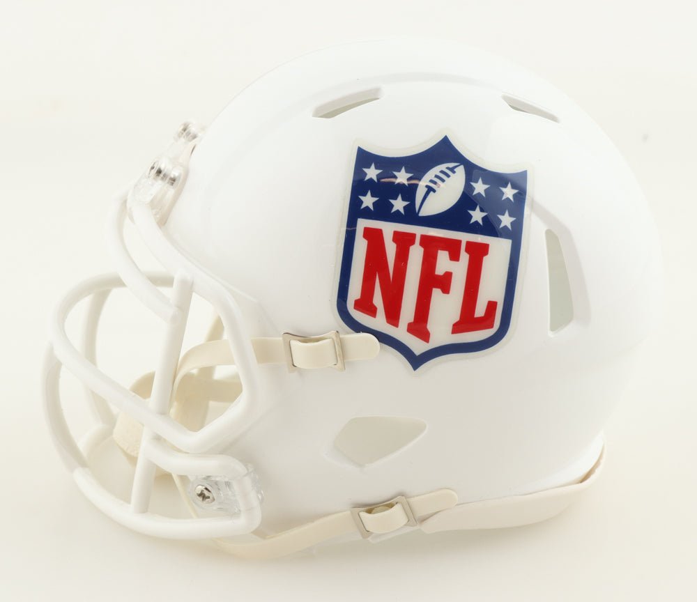 NFL Logo speed mini helmet. Hand-signed by Ray Lewis (Baltimore Ravens, HOF).