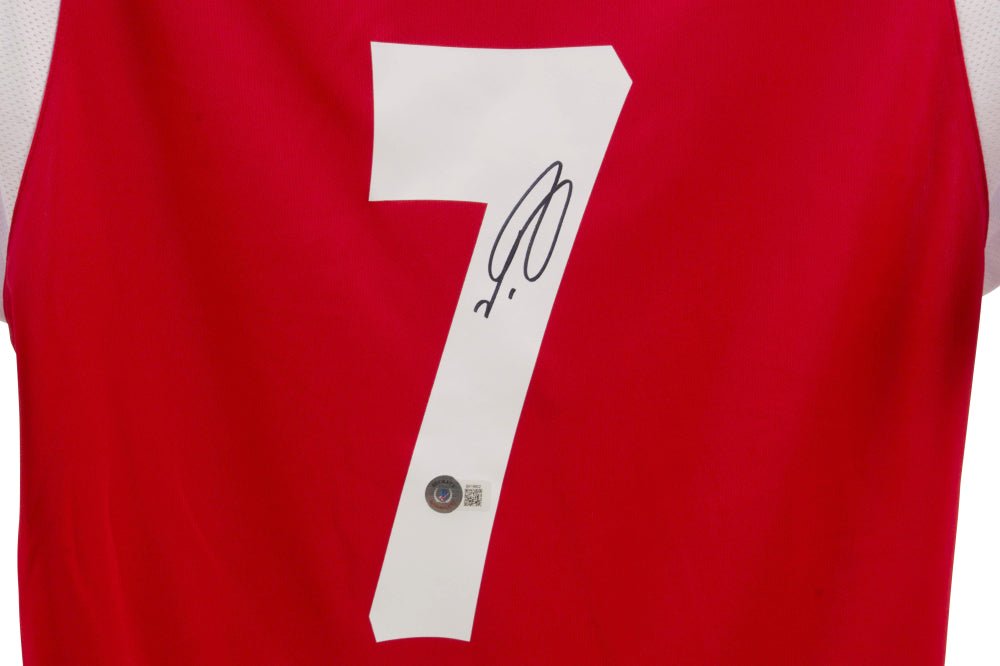 Nike style soccer jersey with everything pressed on, size L. Hand-signed by Robert Pires.