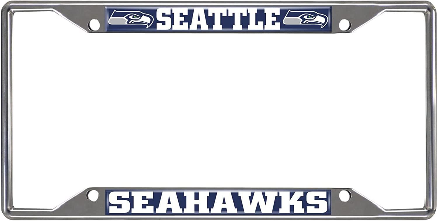 Seattle Seahawks Metal License Plate Frame Chrome Tag Cover 6x12 Inch