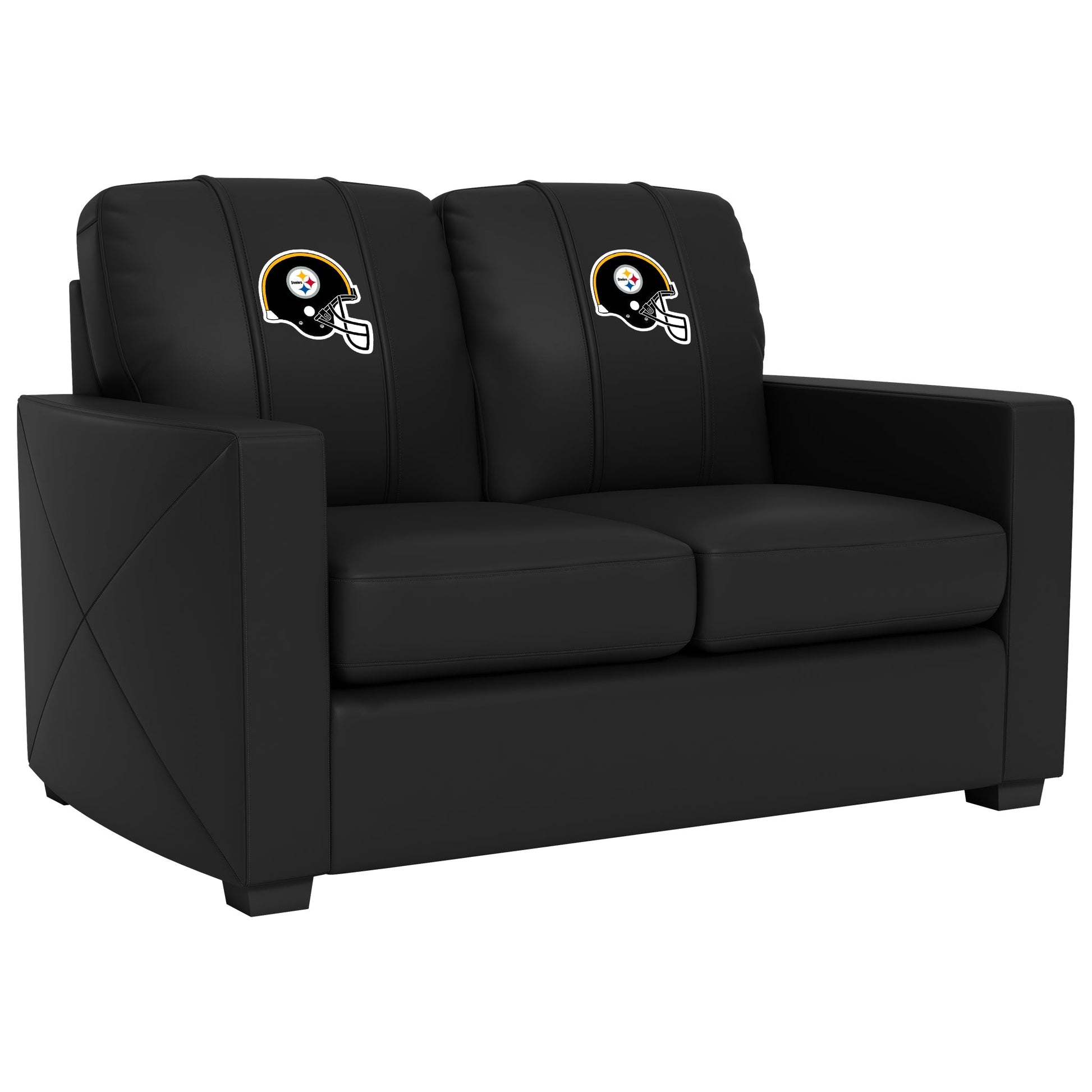 Silver Loveseat with Pittsburgh Steelers Helmet Logo