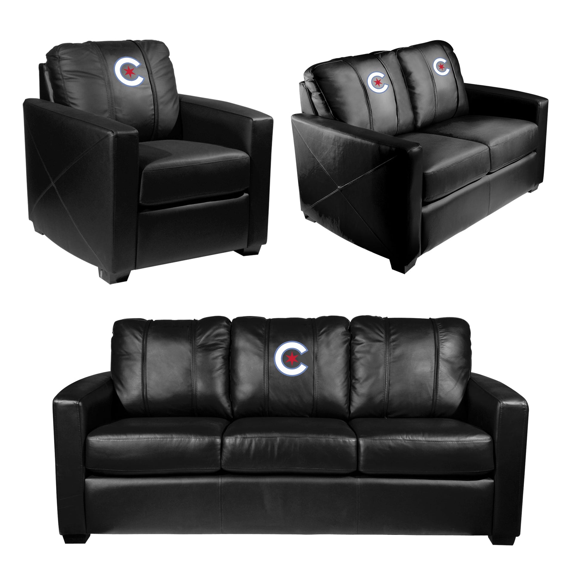 Silver Sofa with Chicago Cubs City Connect Primary Logo