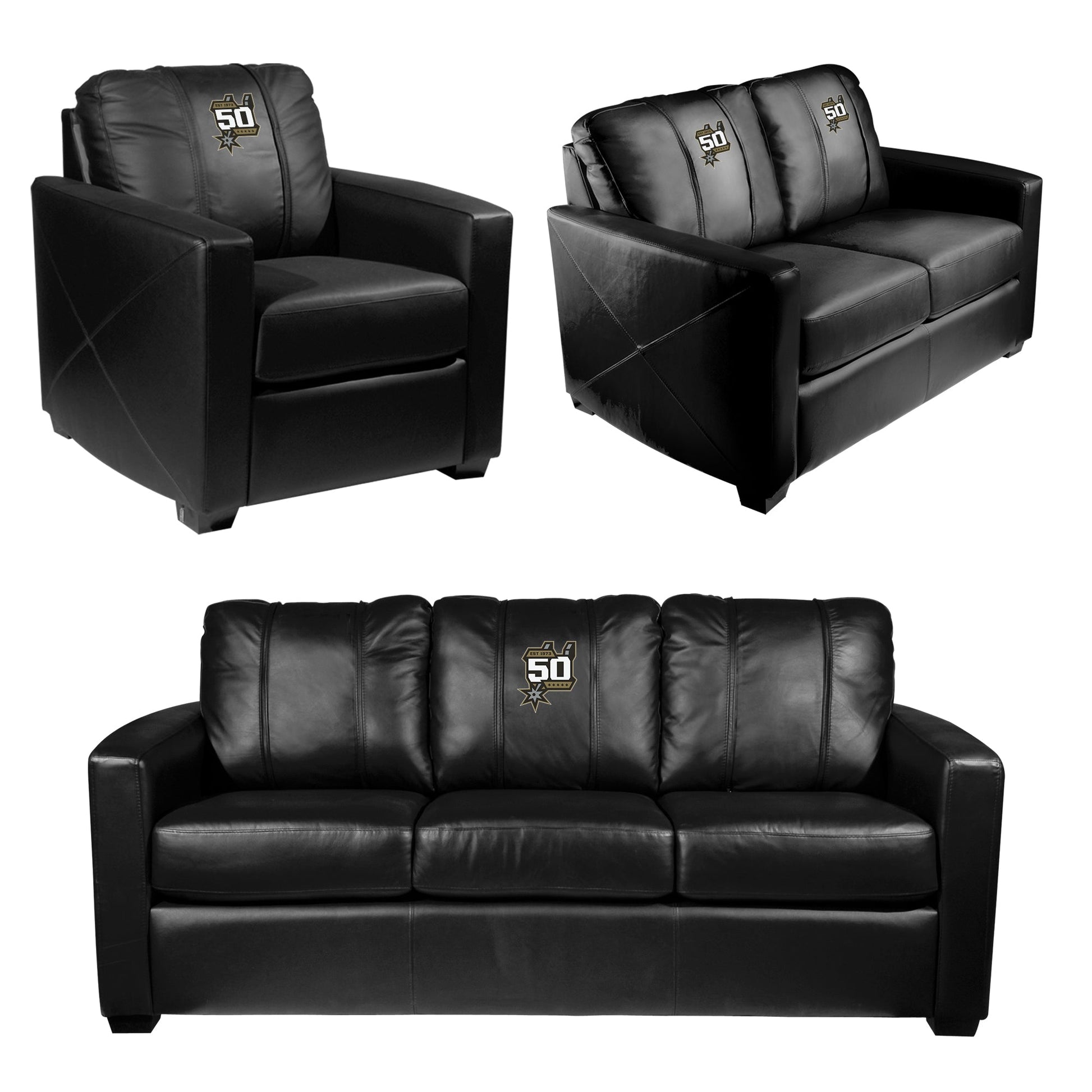 Silver Sofa with San Antonio Spurs Team Commemorative Logo