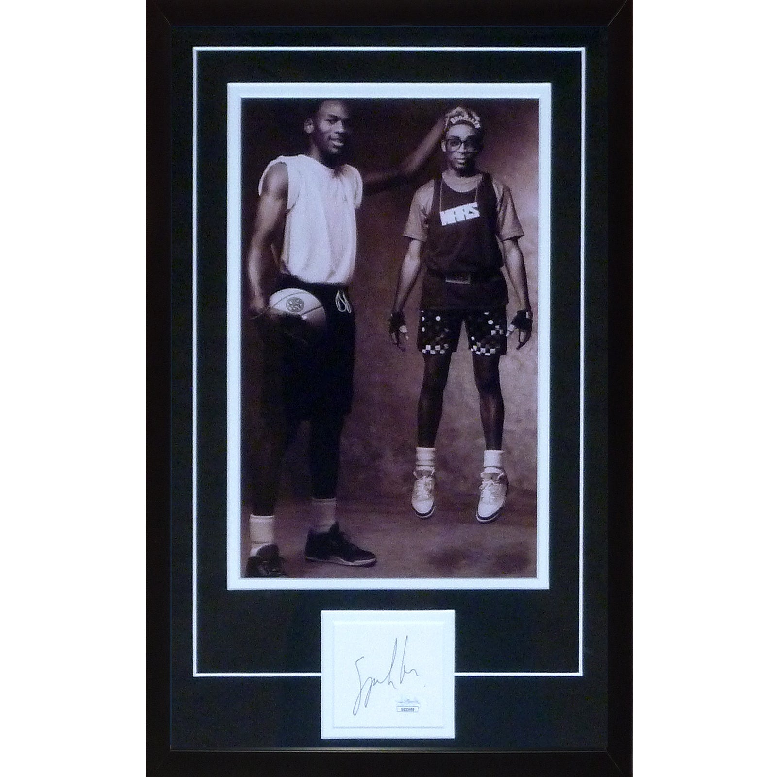 Showcase your love for basketball and iconic film with this deluxe framed 8x12 photo featuring the Nike Ad campaign with Michael Jordan and Spike Lee. The perfect addition to any sports memorabilia collection, certified by JSA for authenticity. Limited quantities available. Don't miss out!