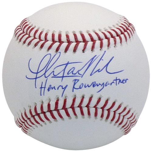 Own a piece of cinema history with this authentic Thomas Ian Nicholas autographed MLB baseball authenticated by Schwartz. This exclusive item features an autograph from the star of "Rookie of the Year," accompanied by a special inscription referencing his iconic character, Henry Rowengartner. An essential addition to any fan's collection!
