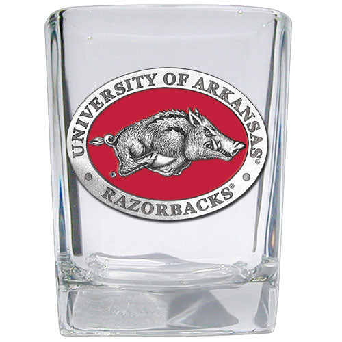 This 1.5 ounce square shot glass is highlighted with a fine pewter casting. Made in USA.