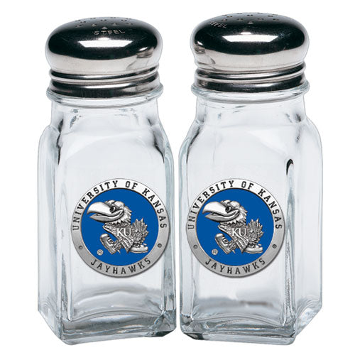 This is a set of salt & pepper shakers with a fine pewter logo medallion bonded to the side. Made in USA.