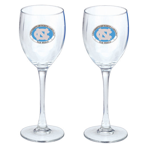 This is a set of two 12 ounce glass goblets with a fine pewter logo medallion bonded to the side.  It could be used to serve water, wine or other beverages. Made in USA.