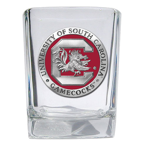 This 1.5 ounce square shot glass is highlighted with a fine pewter casting. Made in USA.