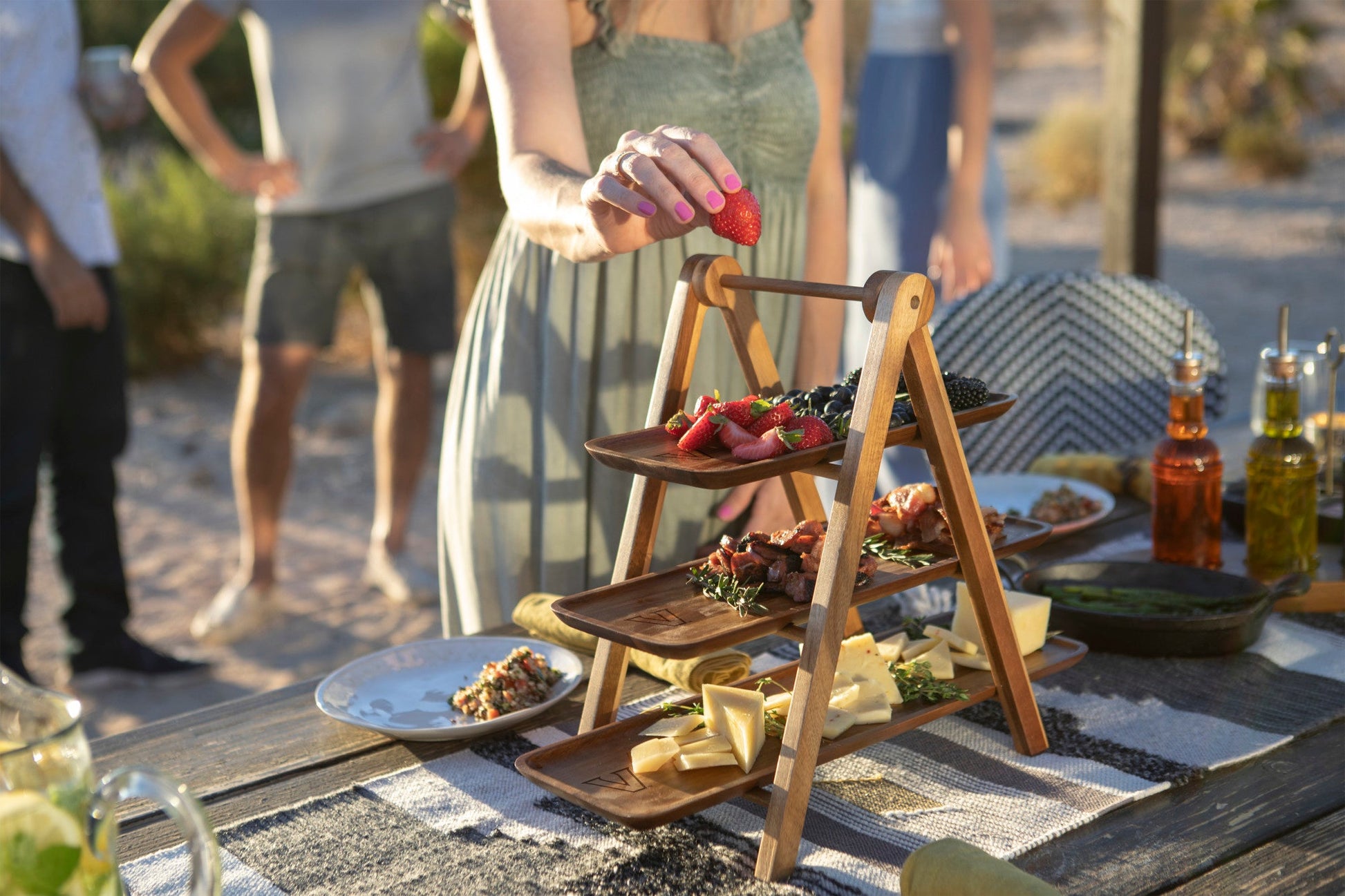 At once space-saving and stylish, the Serving Ladder is a 3-tiered serving station with small, medium, and large removable trays set on a collapsible ladder. Made of Natural Acacia, this serving set is the perfect centerpiece for picnics and wine & cheese tastings! The classy layout will especially wow the guests at your next dinner party or family get together.