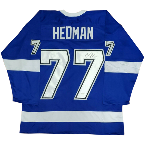 Take your love for the Tampa Bay Lightning to the next level with this authentic Victor Hedman autographed custom jersey! The striking blue color and #77 on the back make this jersey stand out. Show your support for the team in style.