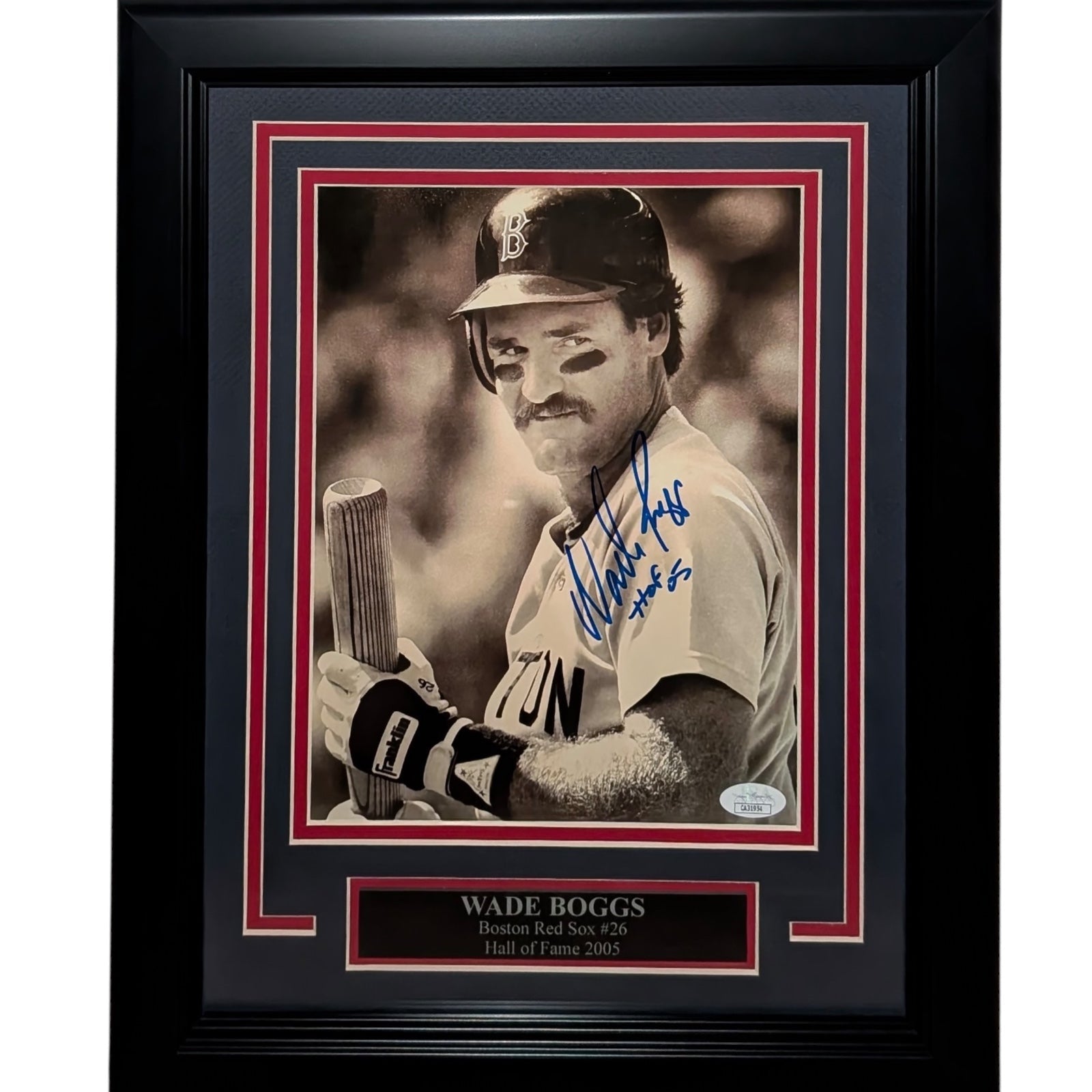 Join the ranks of Red Sox fans with this deluxe framed 8x10 photo, personally autographed by the legendary Wade Boggs. Your fandom will be solidified with this authenticated collectible, certified by JSA. Own a piece of Red Sox history and proudly display this in your home or office.