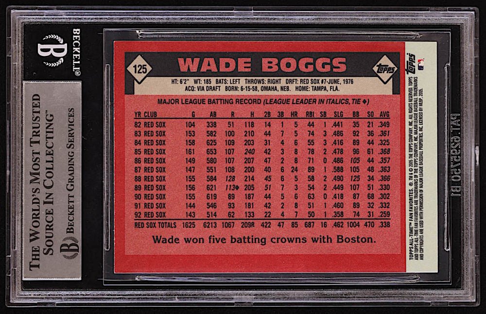 Wade Boggs Boston Red Sox, HOF Signed 2005 Topps All-Time Fan Favorites #125 (BGS)