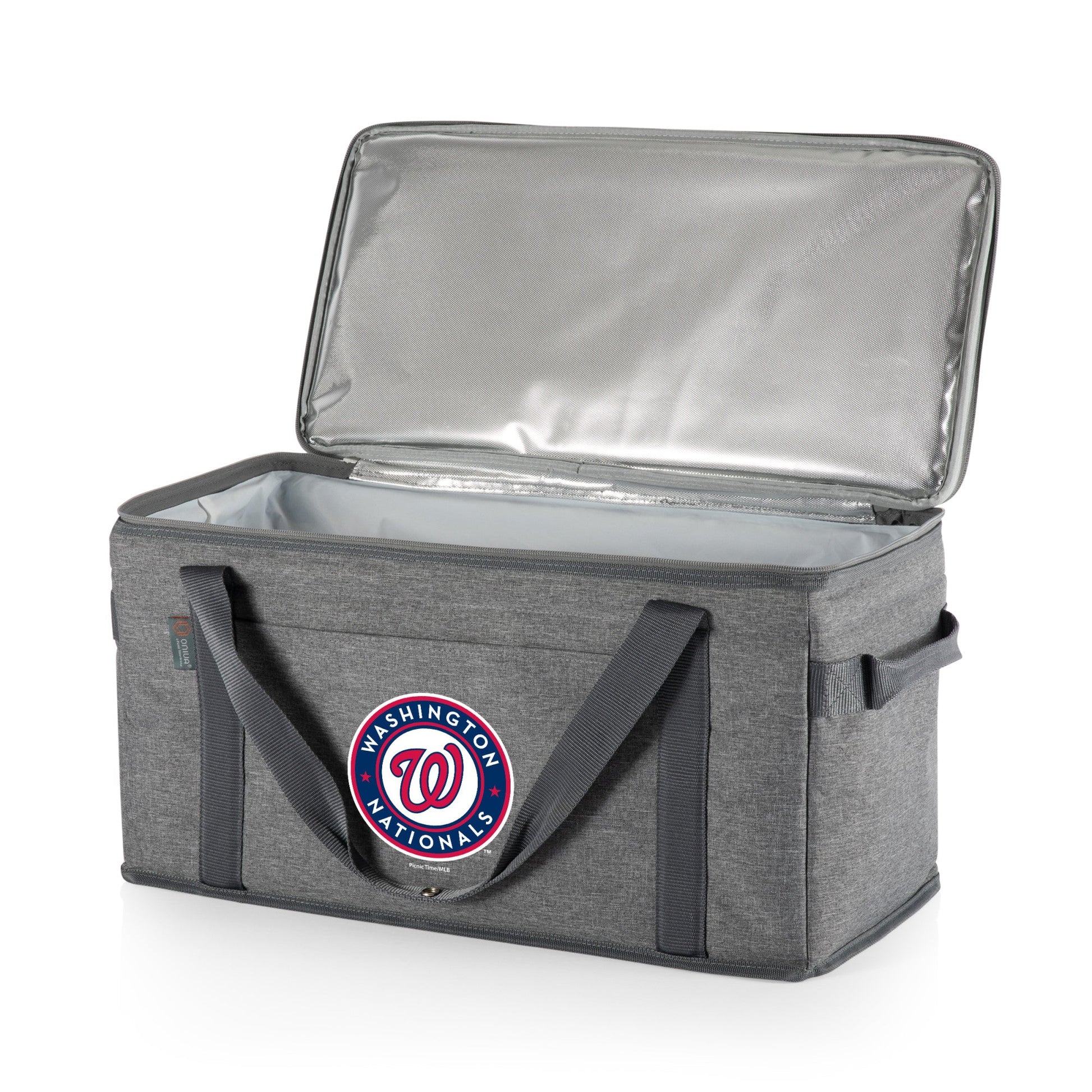 Headed to a big tailgate? Camping with a group? Snack parent for a thirsty crew? Enter the Washington Nationals 64 Can Collapsible Cooler, an insulated soft beverage tote with seriously big capacity! This soft-sided, insulated picnic tote features a water-resistant interior and easily compacts for storage or post-party transport. When you’re through all 64 cans, just secure it to a large pack with the included securable bungee cord or fold it up into another carrier. Go ahead and pack up more than 5 12-packs or pop in some brews and soda with your full picnic - this insulated cooler tote is versatile, durable, and ready for some action! Keep the bubbly bevs flowing on-the-go while you’re having fun with family and friends with the Washington Nationals 64 Can Collapsible Cooler