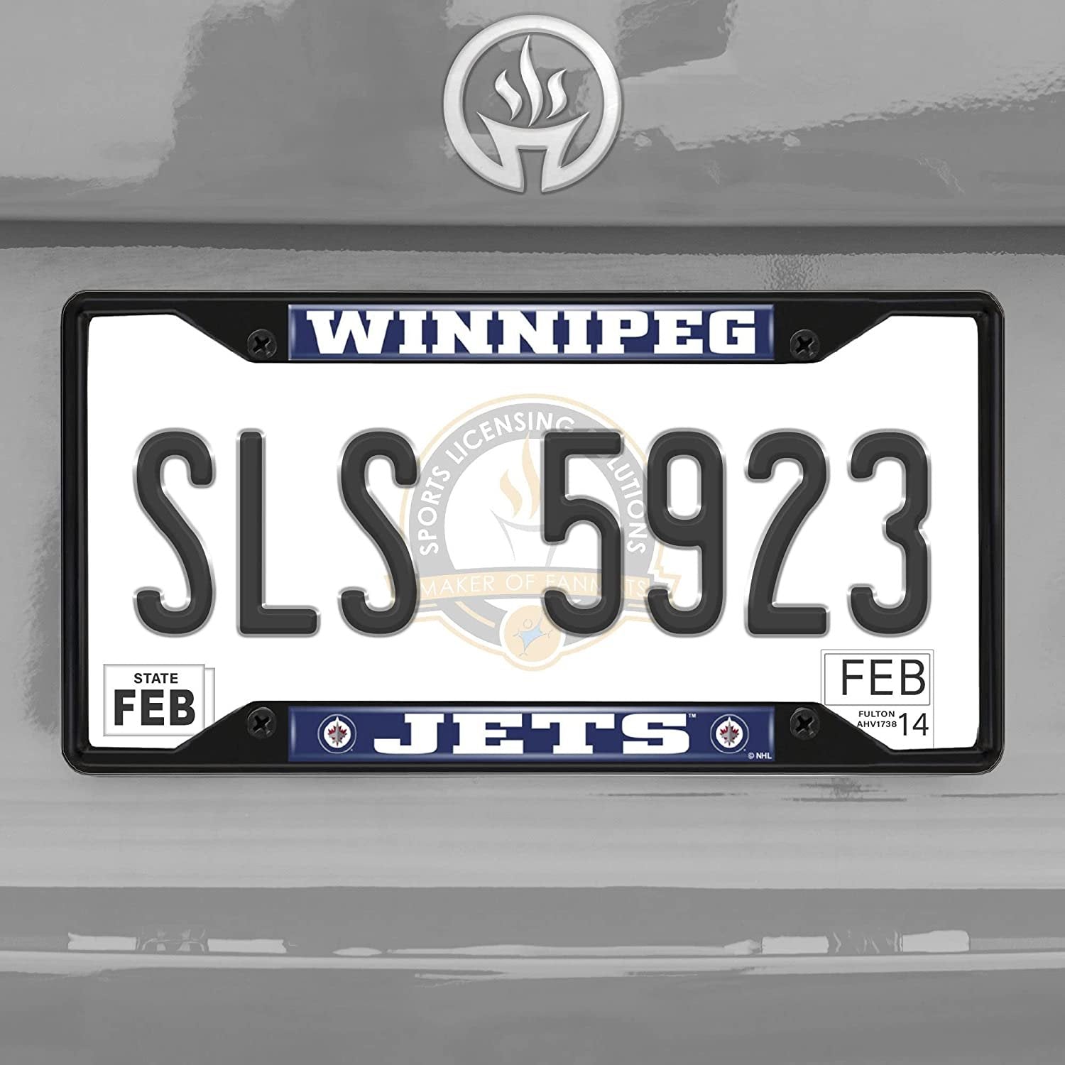 Winnipeg Jets Black Metal License Plate Frame Auto tag Cover, 12x6 Inch